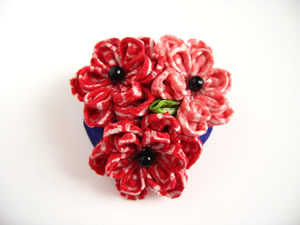 いつもかんざし作りを応援してくださるミセスからのオーダーにより作成。あらかじめいただいていた絞りの古布を使いました。普段着ていらっしゃるモノトーンや藍色のお洋服に合うように、台の色は鮮やかな濃紺にしました。作品名はお客様に考えていただきました☆