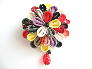 お洋服のワンポイントになるようなブローチを作りました。落ち葉が沢山集まったような色合いになったので、この作品名にしました。