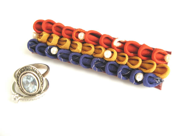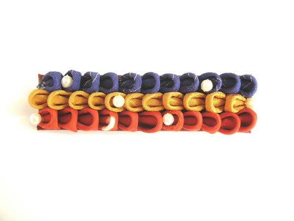 秋らしい色のブローチを作りました。色合わせのヒントは今年の秋物ファッションです。