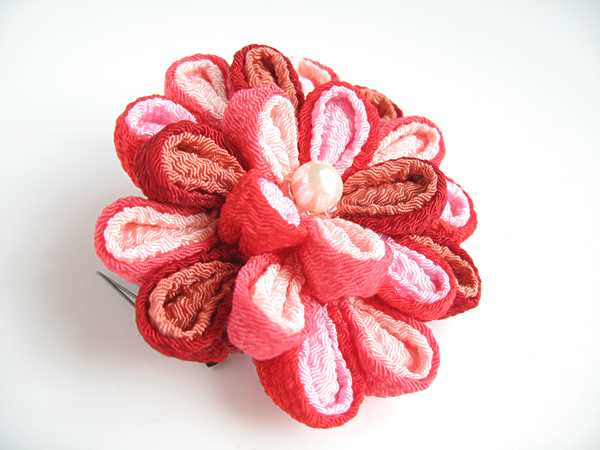 レーヨンのちりめんの扱い方が分かったので、4タイプ作ってみました。ベーシックな赤系です。大きめなので振袖などにぴったりです。