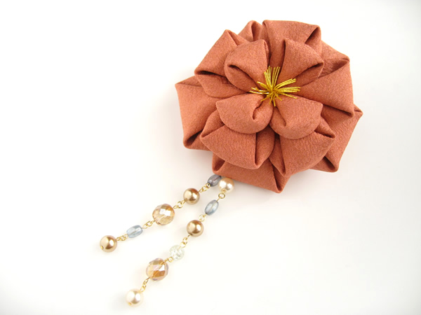 訪問着を仕立てた方から、端切れで何か作れないか?というお話をいただき、大きめでパーティー向けの髪飾りを作らせていただきました。ぜひ訪問着と合わせてお使いいただければと思います。