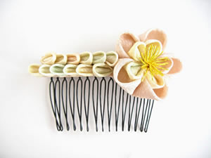 春先から夏の浴衣にも合わせられる髪飾りを、とのご要望でお作りさせていただきました。事前にこのウェブをじっくり見ていただいており、既にご希望のデザインもお決まりでした。ありがとうございます!不定期で開催している体験教室にもご参加いただき、本当に感謝です!