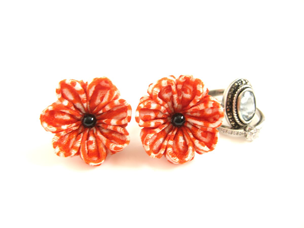 2010年にお作りしたイヤリングがやや傷んできたので、新しい物をほぼ同じ様な生地で作り直しさせていただきました。同じデザインを再びオーダーしていただけるのは、作家として非常に嬉しいです。