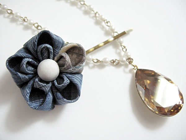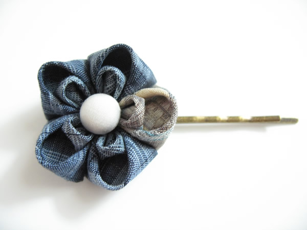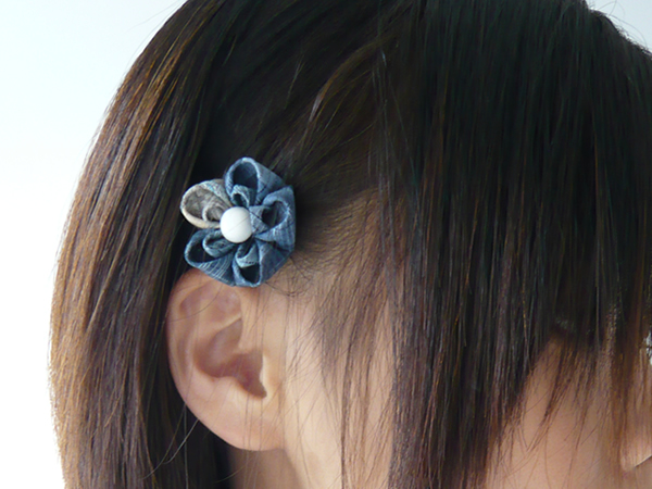 いつもお世話になっている、ウェブ担当へのプレゼントです。髪の毛をどんどん短くしていくので(笑)、今回はヘアピンを作りました。デニムをはく時につけてもらいたかったので、カジュアルを意識して作りました。