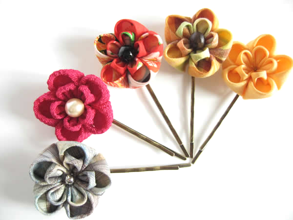 シルク(着物端切れ、縮緬)、コットン、パール(模造)、ビーズ、ボタン