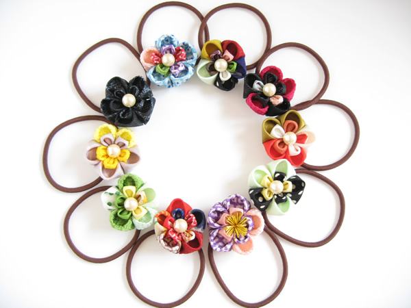 年齢問わず大好評のヘアゴムです。今回は夏~秋向けの色で作りました。