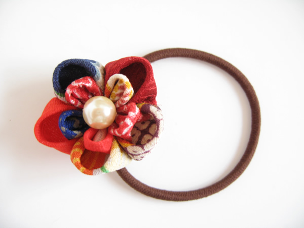 シルク(小紋、紬端切れなど)、レーヨン、コットン、パール(模造)、金糸