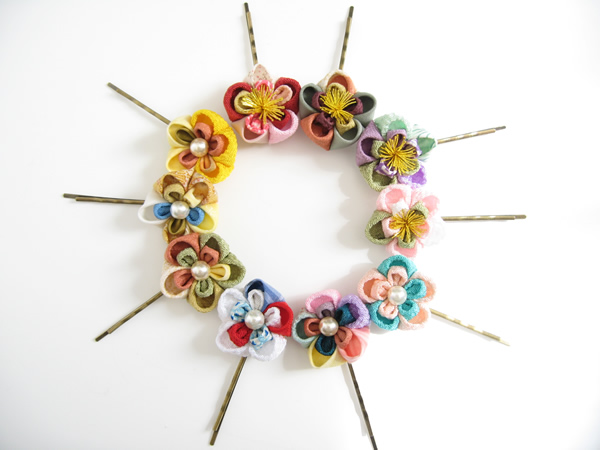 シルク(着物端切れ、古布など)、コットン、レーヨン、金糸、パール(模造)、ビーズ