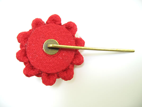 大きめのヘアピンを作りました。真っ赤なので着こなしのワンポイントにしていただければと思います。