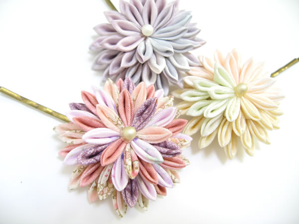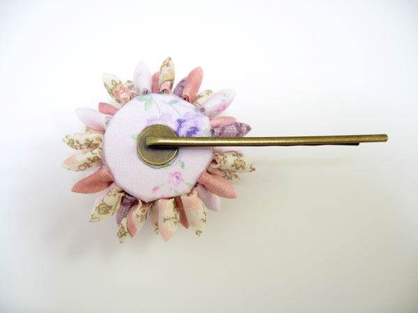 大きめのヘアピンを作りました。数種の端切れを使っています。