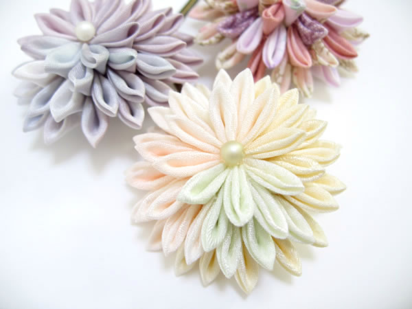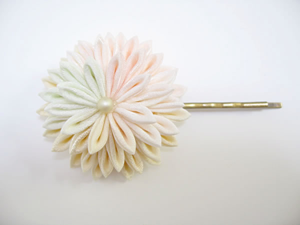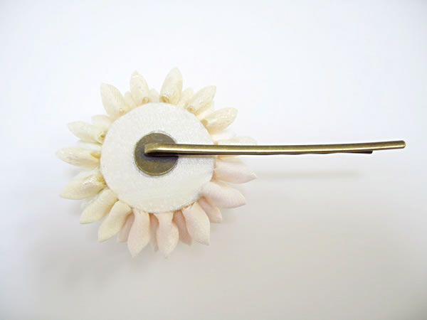 大きめなの花のヘアピンです。素材用に購入した新品の長襦袢一反を初めて使ってみました。