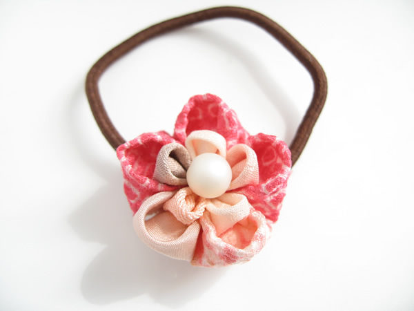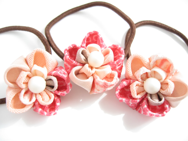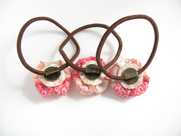 Web担当の3人の姪っ子さん用に作ったヘアゴムです。三つとも似ていますが実は一つ一つ微妙に違います。