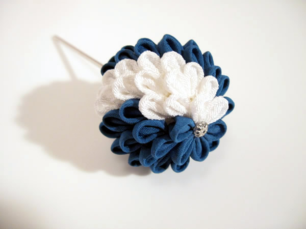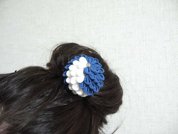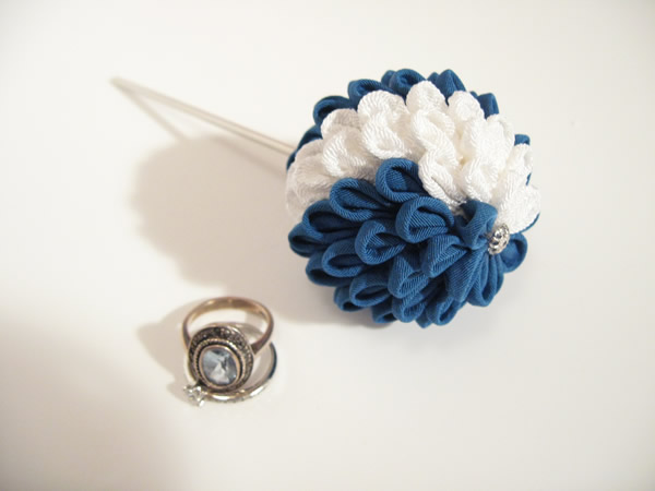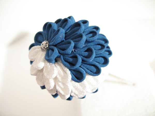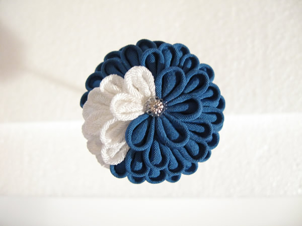 春日部の美容室amiさんに置かせていただく第一号の作品として、お店の色「青×白」をモチーフに作りました。”ami=(仏語)友人”なので、親しみやすいコロンとしたデザインにし、カジュアルな一本挿しにしました。