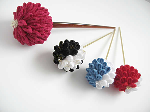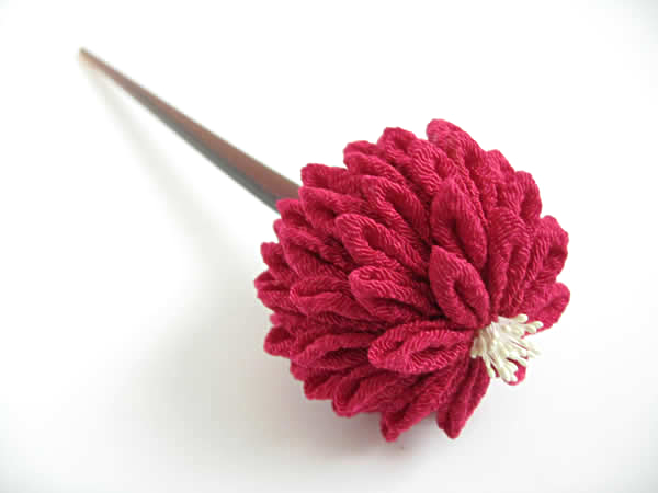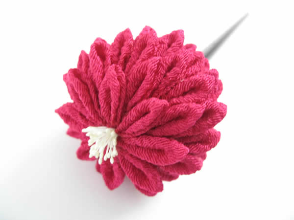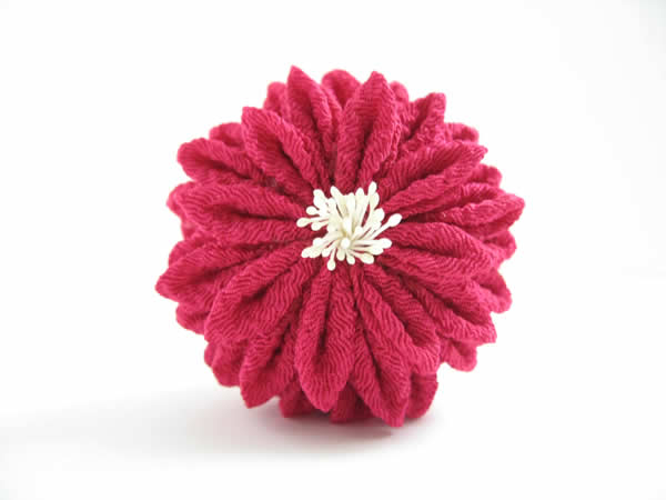私の好きな花のひとつ、ダリアをモチーフとして作りました。今回はシンプルに、一色だけで仕上げました。大きい作品ではないですが、これだけで80枚の花びらを使っています。
