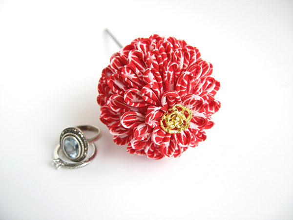久し振りに一本挿しを作りました。細かい麻の葉の柄の布を使って作っています。