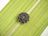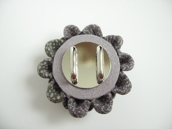 着物の端切れを沢山下さった方へのお礼として作りました。表と裏で柄も色も違う江戸小紋の端切れがあったので、両面を使って帯留めにしました。ちなみにグレー側には「新世紀元年」という文字、グリーン側には小花の柄が染められています。・・・ほとんど見えませんが・・・。