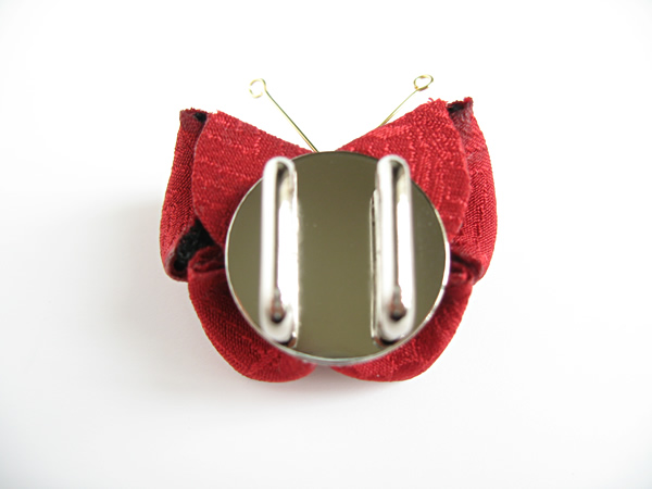 根強い人気の蝶型の帯留めです。赤と黒の個性的な蝶にしてみました。