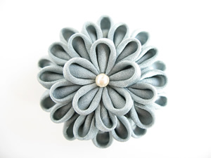 ブルーグレーの帯留めを、とのご依頼で作りました。うっすらと墨流しの模様のある小紋の端切れを使っています。