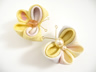 京都の「一真工房」さん経由でご注文いただきました。小紋の端切れで作らせていただいた帯留めです。優しい色合いの作品にしました。