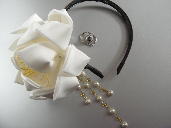 花をカチューシャに付けるのに四苦八苦し、一本カチューシャをダメにしました。