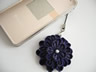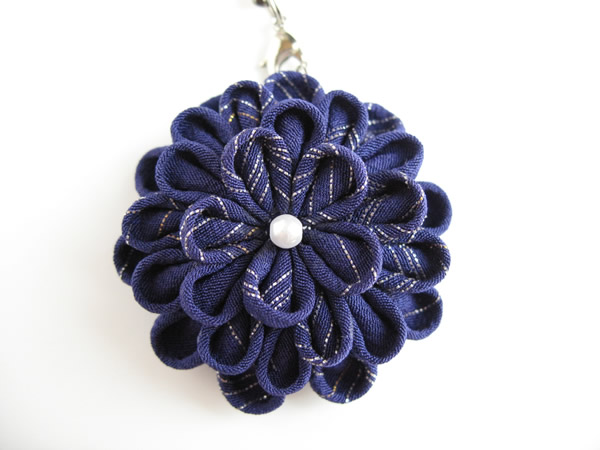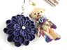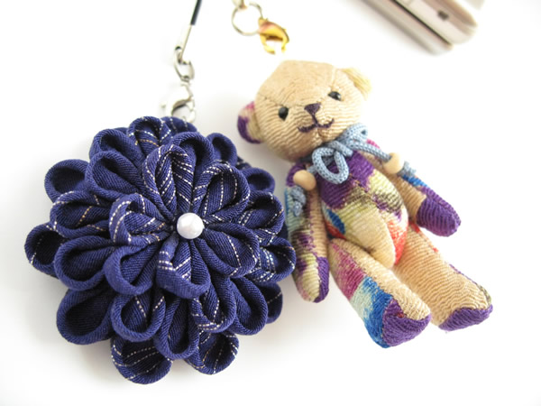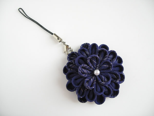 男性向けのストラップとして作成。依頼主からいただいた半衿の端切れを使わせていただきました。濃い青色に所々銀糸が入っている生地だったのですが、その銀糸が縁起の良い蜘蛛の巣のように見えたので、この作品名にしました。