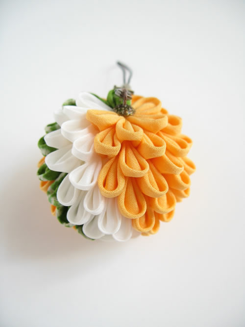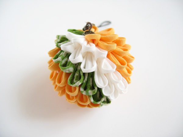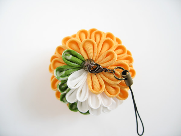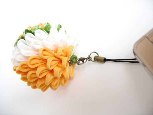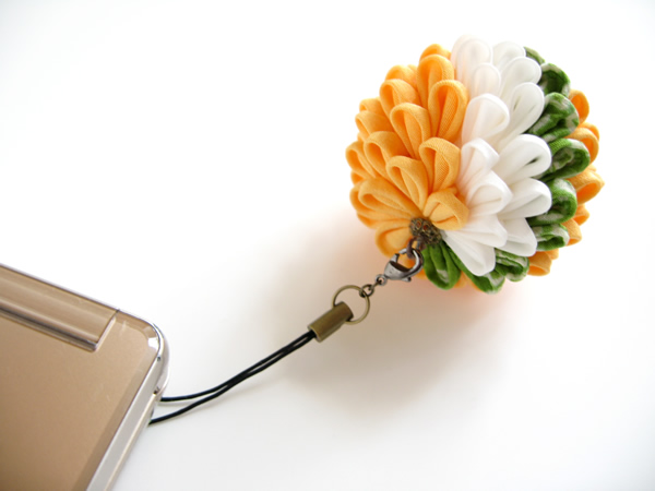 一本挿しの「紅玉」シリーズを欲しいけど、髪が短くて挿せない・・・という友人からのリクエストで、ストラップを作りました。色は完全にお任せだったので、彼女の好きな色であるオレンジをメインに使ってみました。