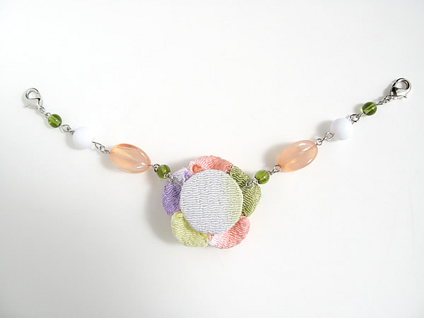 京都の「一真工房」さんに置いていただくサンプルとして作りました。春らしくて可愛い作品にしたかったので色合い(特に緑の色調)にだいぶ悩みましたが、このような仕上がりとなりました。