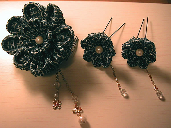 黒地の絞り染めを使いました。絞り染めが入っている振袖や古典的な柄の振袖をお持ちの方、または髪の色が明るめの方にお勧めです。