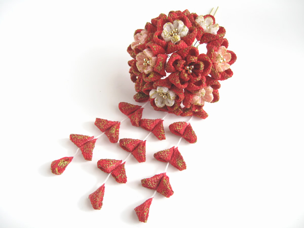 素材 | 枝垂れ | レーヨン、シルク(帯揚げ端切れ)、ビーズ |