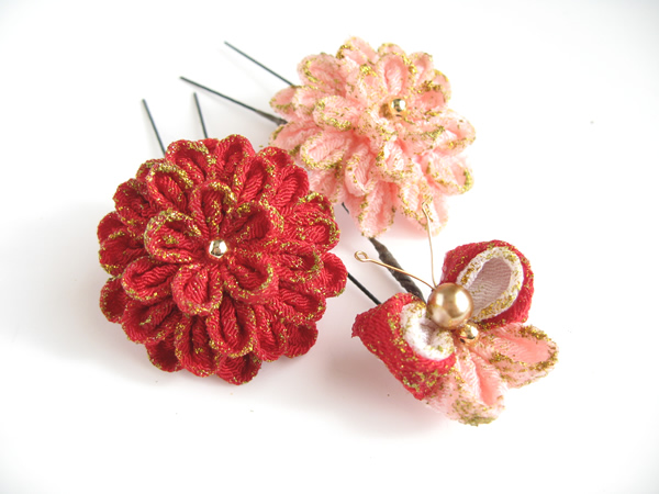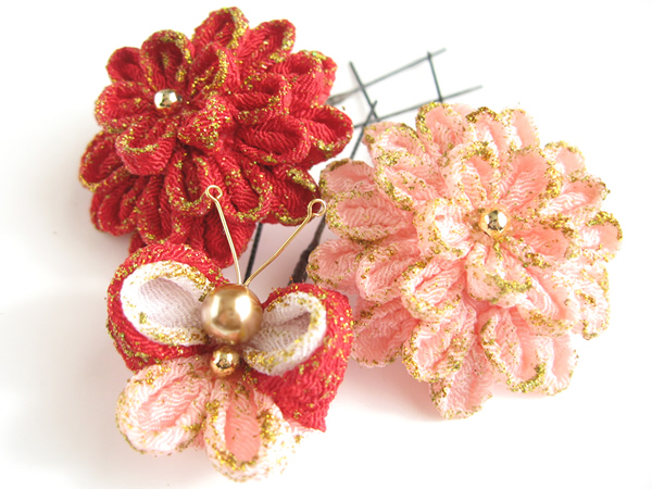 Uピン:蝶型 | レーヨン、シルク(帯揚げ端切れ)、パール(模造) | |
