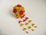 卒業式に着る振袖と袴に合わせて作った作品。深緑色地の振袖と、からし色の袴で、イメージは「和風でシックに」とのことだったので、花の中心を金糸にし、色も落ち着きのある色でまとめました。